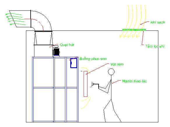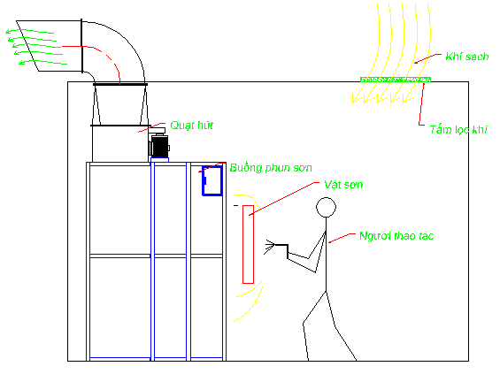 - Khi hút sơn yêu cầu cần phòng kín, sử dụng lọc không khí tự nhiên cấp nguợc lại cho khu vực sơn. Việc này nhằm tránh không cho bụi bẩn bay vào khu vực buồng sơn nhằm nâng cao chất luợng của sản phẩm sơn.